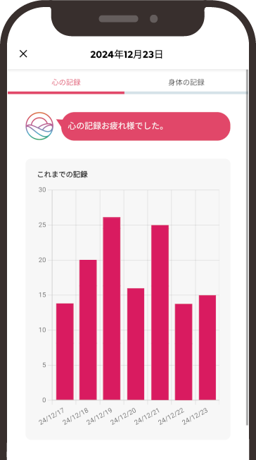 日々の心と身体の状態を記録しましょう!心と身体の状態を記録すると、カレンダーやグラフでも表示されます!